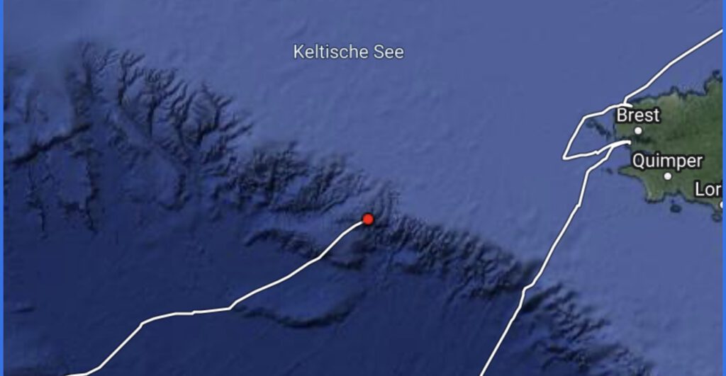 Auch wenn ich mit kleiner Fahrt nur langsam vorankomme, bin ich dennoch viel zu schnell. Um den Starkwinden am Freitagnachmittag und in der darauffolgenden Nacht nicht zu begegnen, wird ab heute Abend abgewettert. Technisch bedeutet es, das die Fock back bleibt und Gegenruder gesetzt ist. Der Autopilot ist deaktiviert und das Schiff treibt mit dem Wind und der Strömung. Dieses Manöver wird bis Samstagvormittag gefahren, um dann wieder Kurs auf Brest zu nehmen.