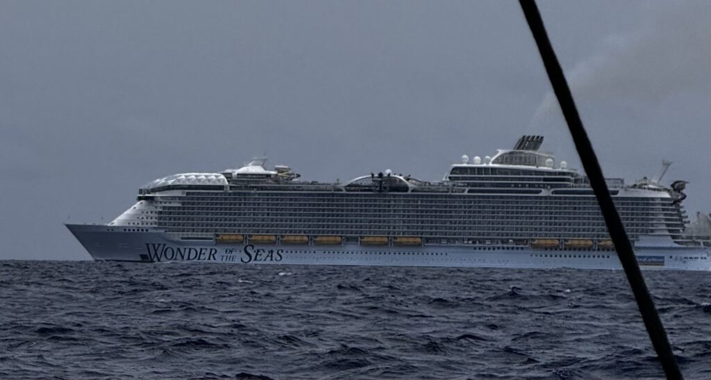 08.06.2024 Heute kam mir ein Frachtschiff mit Kurs 159° (die Sealady mit 360°), also schräg auf Kollisionskurs entgegen. Wir kamen beide der KVR Regel 14 (entgegenkommende Fahrzeuge) nach. Wie kann es sein, das zwei Schiffe auf dem Atlantik aus unterschiedlichen Richtungen kommend, die vom Festland hunderte Meilen in der einen und tausende Meilen in der anderen Richtung Platz haben, zusammenstoßen, würde beide den Kurs nicht ändern. Meine mathematischen Kenntnisse reichen nicht aus, um die Wahrscheinlichkeit einer Kollision zu berechnen. Ich könnte mir gut vorstellen, dass die Wahrscheinlichkeit im Lotto den Jackpot zu gewinnen höher ist.