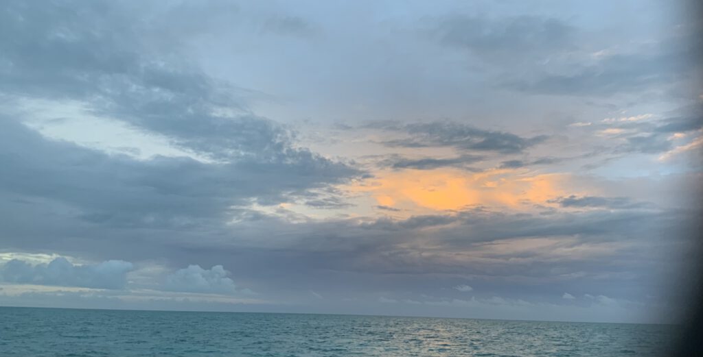 19.04.24 – 21.04.2024 Der Wind hat sich ab Florida immer der Vorausrichtung des Schiffes angepasst. Erst seit heute Morgen ist ein Segeln mit Kurs halber Wind für 5 Stunden möglich. Ich bin zufrieden: der Wind weht konstant mit 3-4 bft., die Temperaturen sind traumhaft und es gibt keinen Niederschlag. Lt. der Vorhersage, wird das Wetter noch eine Woche so stabil bleiben. Momentan geht die Fahrt vorbei an Nassau, Alice Town und heute Abend Freetown. Es ist schon merkwürdig, kein Segelschiff und kein Motorboot sind zu sehen, weder visuell noch auf AIS.